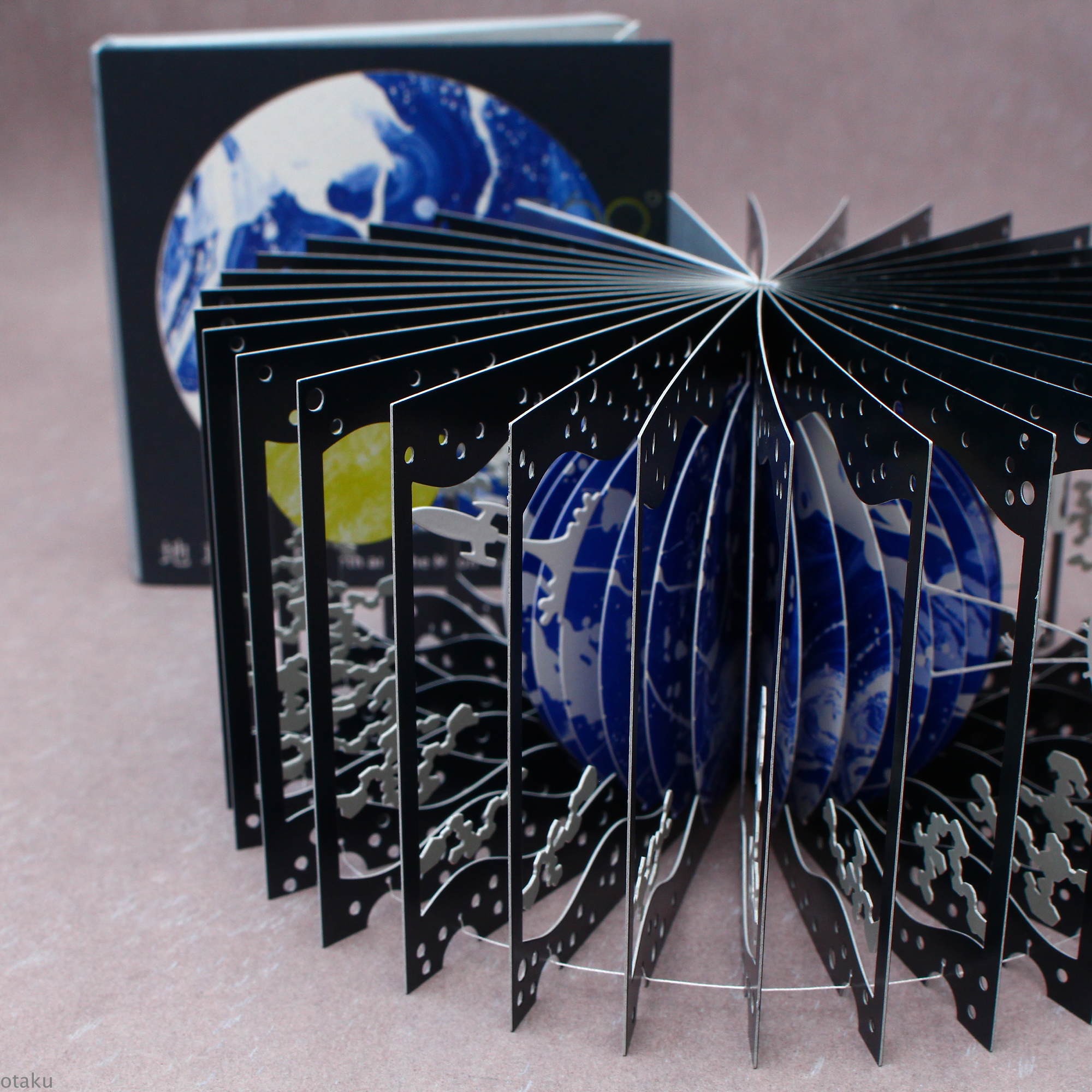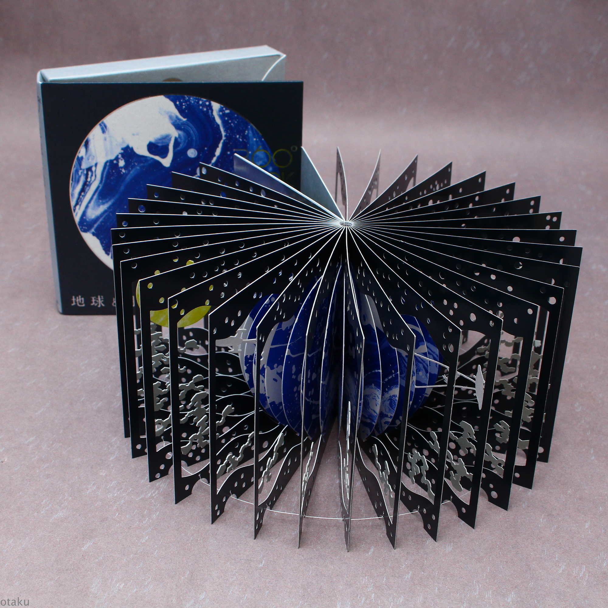 Opens out into a 360-degree model of the Earth and Moon.